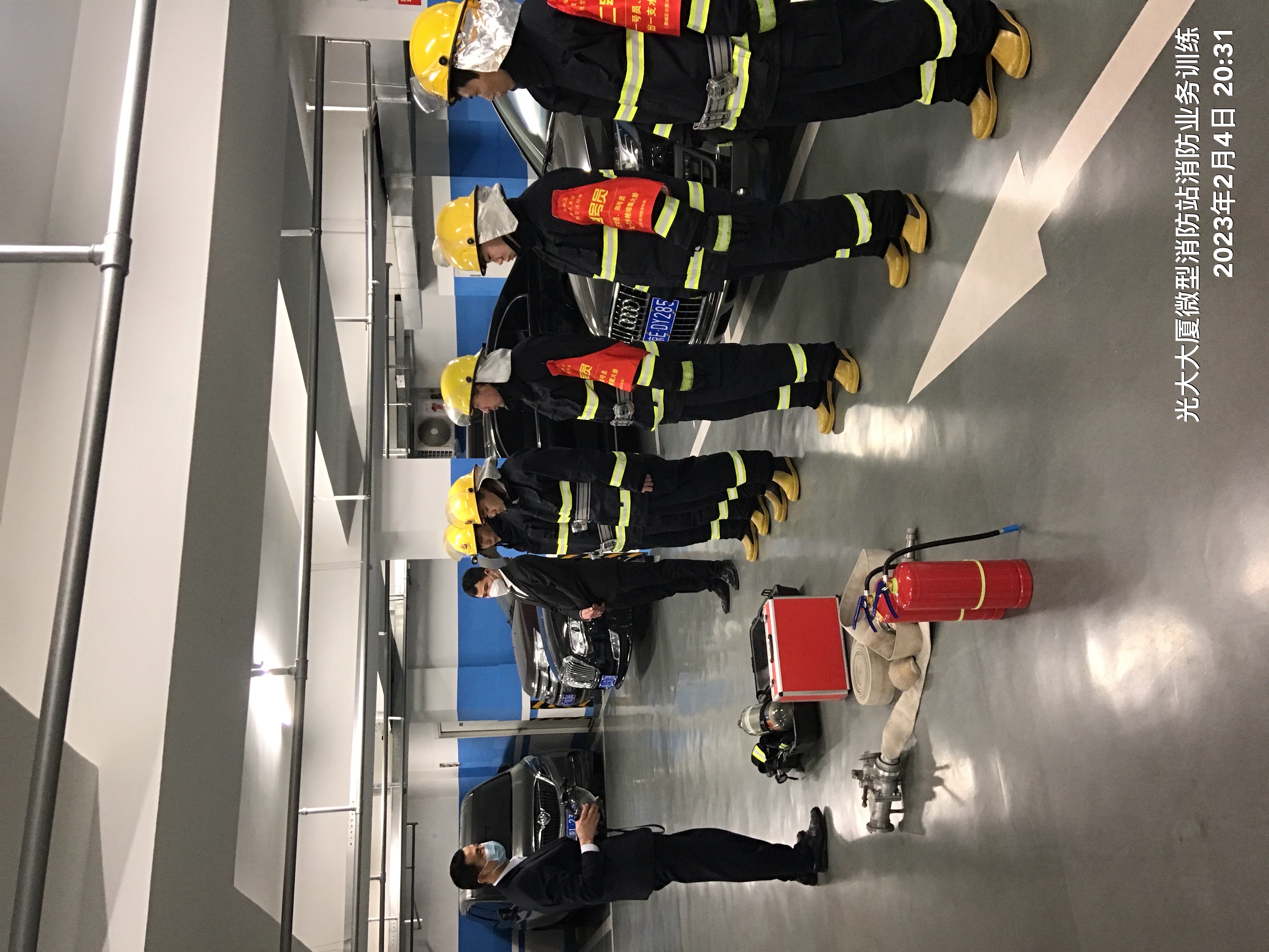 ▲陳志華帶領(lǐng)光大大廈微型消防站隊(duì)員們進(jìn)行日常訓(xùn)練