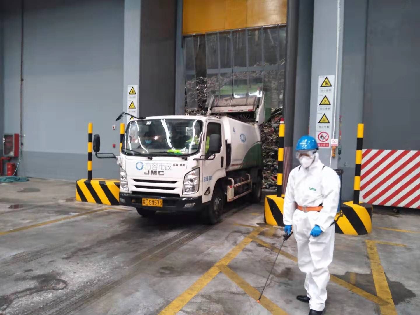 1月28日上午11時(shí),一輛特殊的垃圾運(yùn)輸車緩緩駛?cè)牍獯髧?guó)際蘇州垃圾焚燒發(fā)電廠,車內(nèi)運(yùn)送的垃圾來(lái)自蘇州市第五人民醫(yī)院——蘇州市疫情隔離治療定點(diǎn)醫(yī)院,其中混有丟棄的防護(hù)口罩及防護(hù)服等有害垃圾。工作人員迅速按照預(yù)案展開行動(dòng),對(duì)車輛進(jìn)行全面噴灑消毒,第一時(shí)間將垃圾投爐焚燒,并對(duì)車輛、地面、清掃工具進(jìn)行二次消毒,防止二次污染,把好防疫最后一道關(guān)。